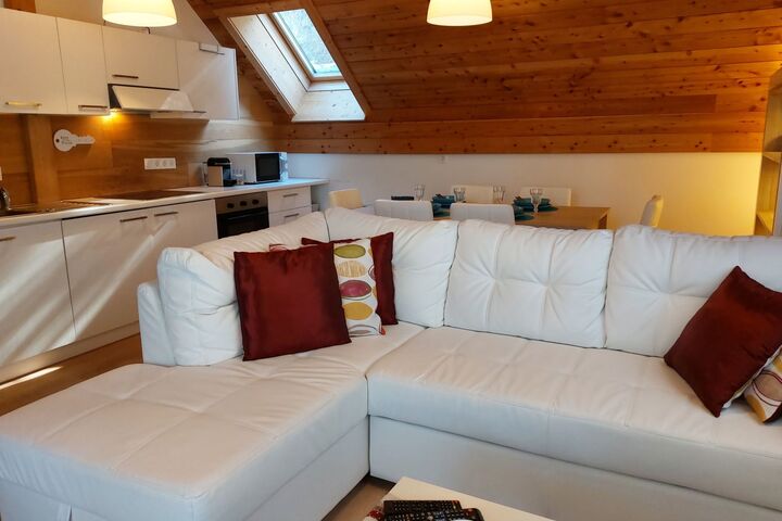 The maisonette flat is located in Bad Kleinkirchheim, a well-known spa and winter sports resort in Carinthia, close to the Italian border. The village, with around 2000 inhabitants, offers access to over 180 kilometres of pistes with 32 lifts in the ski area as well as the famous thermal spas such as the St. Kathrein and the Römerbad. Additional services such as the sale of ski passes in winter, special offers such as Family and Ski Wellness and the Kärnten Card in summer add a variety of options to your holiday experience.