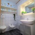 Inside, in addition to the inviting living room, you will find a bedroom with a comfortable double bed and another room with two single beds, ideal for children or friends. The large bathroom has a bathtub, separate shower and WC for maximum comfort. There is also an additional separate bathroom so that morning routines can run smoothly. The kitchen is equipped with modern amenities such as a dishwasher and oven, so that nothing stands in the way of culinary experiences.
