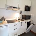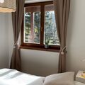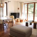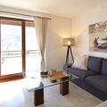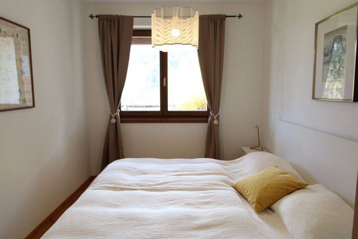 Inside you will find a living room with kitchenette, equipped with everything you need for a carefree stay, including a dishwasher. A cosy sofa and a large window offer you an uninterrupted view of your private garden. The flat also has a bedroom with a double bed and en-suite bathroom and a second bedroom, also with a double bed. A practical sofa bed offers space for a fifth guest. A second bathroom with washing machine, a ski and bicycle storage room and an outdoor car park round off the facilities.