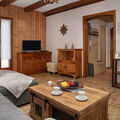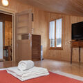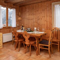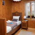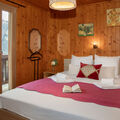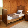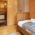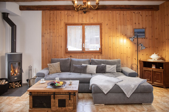 "Mélèze 1967", 5-room chalet 100 m2 on 2 levels, north-east facing position. Object suitable for 2 adults + 3 children. Beautiful and rustic furnishings: large dining room with dining table. Living room with satellite TV and wood-burning stove. Open kitchen (oven, dishwasher, 4 ceramic glass hob hotplates, toaster, kettle, electric coffee machine, Capsules for coffee machine (Dolce Gusto) extra, fondue Set (chinoise, cheese)). Bathroom. Electric heating. Upper floor: 1 double bedroom with 1 french bed (160 cm, length 200 cm). Exit to the balcony, north-east facing position. 2 rooms, each room with 1 bed (90 cm, length 190 cm). 1 children's room with sloping ceilings with 2 sleeping facilities. Beautiful view of the mountains. Facilities: washing machine, dryer. Parking (2 cars). Please note: non-smokers only.