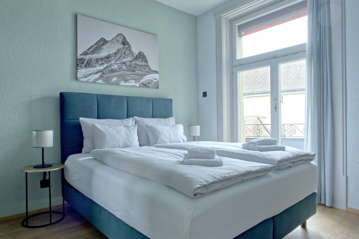 A special highlight of the suite is the balcony, which offers a breathtaking view of the centre of Interlaken and the surrounding mountains. Here you can enjoy your morning coffee or round off the evening with a glass of wine.