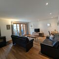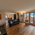 Inside you will find a fully equipped kitchen with a large dining table, 4 hotplates, oven, microwave, fridge, two types of coffee machines (filter and Nespresso), a fondue set as well as a raclette oven and dishwasher. Experience cosy evenings in the living room with a set of cushions and a warming Swedish stove, complemented by an office table and an armchair for relaxing hours of reading. For your comfort, there are two bedrooms with double beds (180 x 200 cm), a bathroom with shower/WC and another bathroom with bath/WC, all with high-quality parquet flooring.
