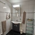 The entire flat has underfloor heating. The heat is generated by solar panels and a central wood heating system.