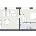 The cosy 2.5-room flat has a bedroom with double bed and 1 bathroom with shower/WC. The flat has a well-equipped kitchen and a cosy living and dining area. In the living area there is a sofa bed for two additional guests. The spacious balcony offers a beautiful view of the surrounding mountain landscape.
