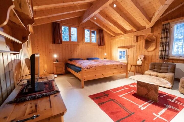 2-room apartment (90m2) on the 2nd floor of a three-family house, with balcony and garden seating area. There is a view of the mountains, it's in a quiet location and there is year-round access with parking space in front of the the house. Double bedroom with armchair. Living room with upholstered suite and lounge table, pine furniture, fireplace, TV/radio/ internet. Modern kitchen with dining/living room, dishwasher, microwave, glass ceramic, hot air oven. Large shower. Additional sleeping facilities in the living room. NON SMOKING ONLY! The house is in a very quiet residential area and yet the BOB to Interlaken or to Grindelwald can be reached in 5 minutes as well as to the Männlichenbahn and Jungfraubahn. For the skis there is a place in the garage.