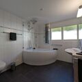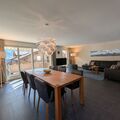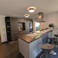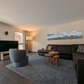 Inside, you will find an open-plan kitchen with a spacious living/dining area, equipped with everything you need for a carefree stay: A large dining table, 4 hotplates, oven, microwave, warming drawer, fridge with freezer compartment, dishwasher as well as coffee machines (filter and Nespresso), a fondue set and a raclette oven. The tasteful and cosy furnishings create an inviting atmosphere. You will also find two comfortable bedrooms with double beds (180 x 200 cm), a bathroom with shower/WC, another bathroom with bath/WC, and an additional room with a sofa bed for one person.