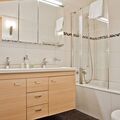 The 4.5-room penthouse (118m2) in a modern alpine style offers a holiday with far-reaching views. It has one bedroom with a double bed, two bedrooms with two single beds each, a bathroom with bath and toilet and a bathroom with shower and toilet. The modern kitchen opens onto a spacious living area with a Scandinavian stove and a large balcony with views of the Eiger North Face. The lift takes you directly from the garage to the apartment.