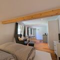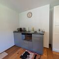 Inside, you will find a tastefully furnished living/bedroom with a comfortable double bed measuring 180 x 200 cm, a cosy armchair and a table. For your self-catering needs, you will find a selection of amenities such as a fridge, microwave, kettle and Nespresso coffee machine to make your stay comfortable. Please note that cooking is only possible with the microwave. There is also a modern bathroom with a toilet, shower and washbasin, equipped with a mirror cabinet.