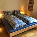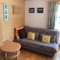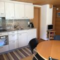 The flat has a well-equipped kitchen with dining and living area. Bedroom with double bed.