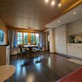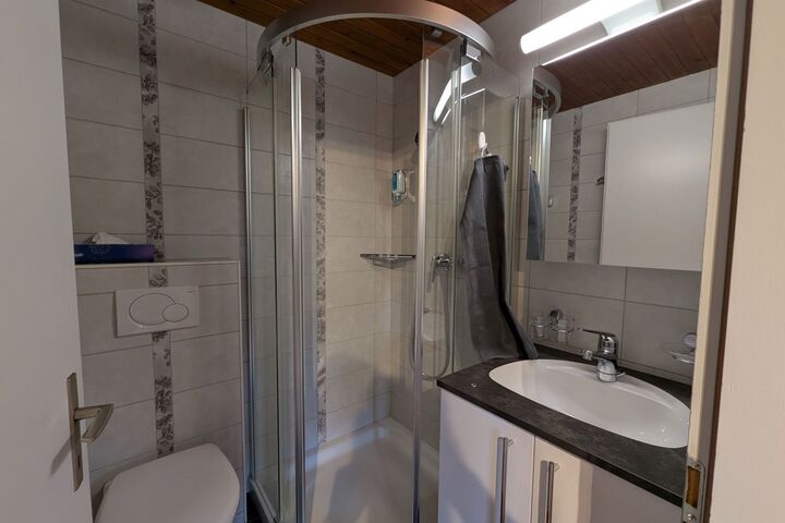Inside, you will find a tastefully furnished flat that leaves nothing to be desired. The bedroom has a comfortable double bed measuring 180 x 200 cm and a large wardrobe for all your belongings. The living room is furnished with an inviting leather sofa with relax function and a dining table. The adjoining modern kitchen is perfectly equipped with a dishwasher, microwave, oven, kettle, filter and Nespresso coffee machines, fondue set and raclette oven. The bathroom has a toilet and shower as well as a washbasin with mirror cabinet.