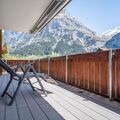 The 90m2 3.5-room apartment on the 2nd floor has a bedroom with double bed, a bedroom with two single beds, a bathroom with shower, toilet and bidet and a bathroom with bath and toilet. The well-equipped kitchen adjacent to the cosy dining/living area. From the balcony you can enjoy the unique mountain panorama.