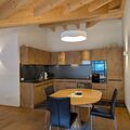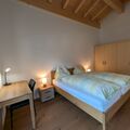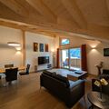 Inside, you will find an open-plan kitchen that flows into a spacious living and dining area. The kitchen is equipped with everything you need to prepare delicious meals, including 4 hotplates, an oven, a microwave, a coffee machine (filter and Nespresso), a fridge with freezer compartment, a dishwasher, a fondue set and a raclette oven. The tastefully furnished living room, which offers a comfortable set of upholstered furniture and a TV, provides cosy hours. Both bedrooms are also equipped with double beds measuring 180 x 200 cm, a large wardrobe and a desk. The space is complemented by two bathrooms, each with a shower/WC or bath/WC, with tiled floors, while the kitchen, living/dining area and bedrooms have high-quality parquet flooring.