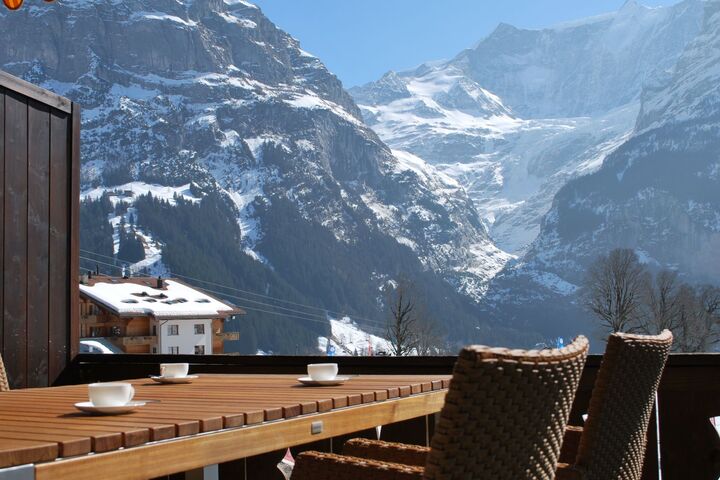 The Terrassenweg is one of the best locations in Grindelwald. The flat is located on the Terrassenweg in a sunny south-facing position. When some areas are still in the shade in the morning or already in the shade again in the afternoon, you can enjoy additional hours of sunshine and a fantastic Alpine panorama. The quiet yet central location guarantees pure relaxation. The village centre of Grindelwald is just a 15-20 minute walk away. Ski enthusiasts will appreciate the proximity to the lift to the ski area (approx. 400 metres) and the possibility to ski directly to the lift station in good snow conditions. The Bodmi ski school is just a few minutes away for beginners. In addition, numerous hiking trails invite you to explore the surrounding area, and a bus station nearby ensures mobility even without your own vehicle.