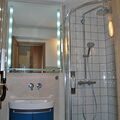 The flat is furnished with a cosy leather couch, a practical foldaway bed (160 cm), which ensures optimum sleeping comfort. The studio kitchen including dishwasher leaves nothing to be desired. A cosy dining area invites you to enjoy meals together and a comfortable dining table also awaits you on the balcony. LCD TV (cable), digital radio, CD player and iPod dock guarantee the best entertainment and relaxation. The modern bathroom with rain shower head is a small highlight that rounds off the feeling of well-being. The entire furnishing of the flat is of above-average quality.
