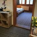 Inside the 55 m² flat on the first floor, you will find a cosy atmosphere complemented by practical amenities. Please note that the property is not suitable for wheelchair users due to its location on the first floor. A well-equipped kitchen allows you to prepare your own meals and offers a Nespresso coffee machine as well as fondue dishes and a raclette oven for cosy evenings. In the cosy bedroom, a large mattress (180x200 cm) invites you to relax, and with satellite TV/radio and free WLAN, nothing is left to be desired.