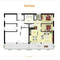 The 86m2 3.5-room apartment on the 3rd floor has a bedroom with double bed, a bedroom with two single beds and a bathroom with shower and toilet. The modern kitchen opens onto the open dining/living area. From the balcony you can enjoy wonderful views of the mountain panorama.