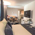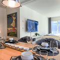 "Silence, Apt. P", 2-room apartment on 1st floor. Comfortable and cosy furnishings: living/dining room with 1 sofabed (140 cm, length 200 cm), dining table and cable TV. Exit to the balcony. 1 room with 1 double bed (2 x 90 cm, length 200 cm). Open kitchen (oven, dishwasher, 4 induction hot plates, toaster, kettle, electric coffee machine, Capsules for coffee machine (Nespresso) extra, raclette grill, fondue Set (cheese)). Bath/WC. Underfloor heating. Large balcony, south facing position and west facing position. Balcony furniture. Marvellous panoramic view of the mountains, the valley and Staubbach. Facilities: hair dryer. Internet (WiFi, free). Please note: non-smokers only.