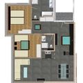 1 double bedroom with integrated bathroom with bath, shower, WC and washbasin and 1 bedroom with 2 single beds, separate shower and WC. Both bedrooms have a built-in wardrobe.
