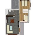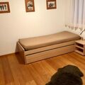 1 double bedroom and 1 room with a single bed incl. pull-out bed, both bedrooms with built-in wardrobe. Bathroom with bath, shower, washbasin and WC.