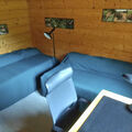 - Spacious living room with large dining table, soapstone stove and cosy sofa