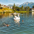 Our sunny and cosy 3-room flat is located in a charming family chalet in Laax-Dorf, in a quiet and idyllic location. From the flat and the sunny terrace you can enjoy an impressive view of the lake, the village and the Signina mountain range.