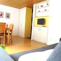 The interior of the flat fulfils all requirements for a comfortable stay. In the living area there is a pull-out double sofa bed, a spacious dining area for six people, connected to a fully equipped kitchen, as well as a swivelling flat screen TV. There is also a shower room with WC.