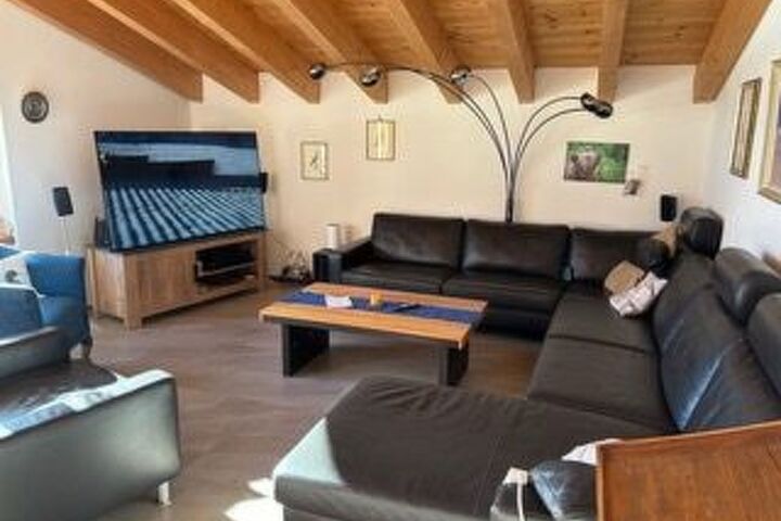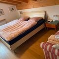 Penthouse flat with a gigantic view of the mountain panorama, tastefully furnished with everything your heart desires. The fireplace creates a cosy atmosphere. The flat was newly renovated in 2016 and 2019 and adapted to current requirements. The location is quiet and yet close to the village centre, bus station reachable in 5min. There are three bedrooms with 2 beds each (1 x 200x200cm bed, 1 x 140x200cm, 1 x 2 beds each 90x200cm with additional sofa bed in the room). There are wall cupboards in all rooms, providing plenty of storage space. The kitchen is equipped with all the necessary utensils. There is additional space for shoes or more in the hallway just outside the front door. The building has a lift, a private parking space outside and a reserved parking space in the garage.