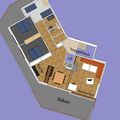 On the first floor there are 3 bedrooms with double beds, 2 WC's, a WC with shower and bath, kitchen, dining table and a large living room with TV. This part of the flat also has a beautiful balcony.