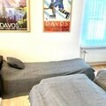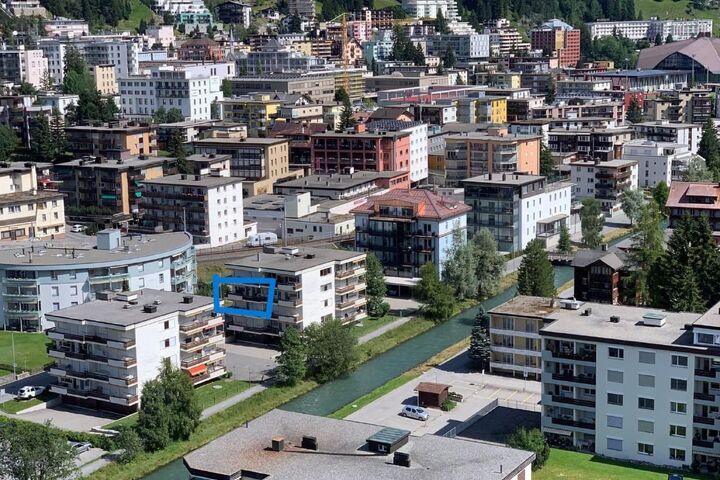 Very central, next to Jakobshorn cable car, Bolgen, near ski school, ski hire, bus stop, large supermarket, restaurants, bars, cafés, Landwasser. The flat is fully furnished and equipped with everything you need for living and cooking. Good WIFI (if you have to work or all children are on mobile phones at the same time). Very large SMART TV with Netflix and apps. In the bedroom is a very comfortable double bed (200 cm x 180 cm) with high quality bedding, in the living room wall beds (real mattresses), and a sofa bed (also super comfortable with a real mattress). Also very comfortable for 5 adults. A car park directly in front of the house is reserved for you. Ski room plus laundry room.
