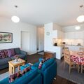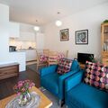 Living room with WLAN, new flat screen TV and balcony (with garden furniture) Couch with 2 sleeping places Open kitchen with dishwasher, induction cooker, oven, Nespresso machine and toaster, microwave, kettle, incl. meat fondue set, as well as crockery and cutlery. Meat fondue set and crockery for 6 people Bedroom with a double bed and 2 single mattresses Electronic light detectors at the entrance and in the corridor, as well as in the fridge, no windows in the stairwell Bathroom with bathtub/sink/WC, hairdryer Shower/WC/sink, shower with partition Entrance area with cloakroom and cleaning cupboard