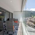 Modern, newly built flat with a beautiful view of the Jakobshorn for 2 people plus 1-2 children right in the centre of Davos Platz and yet very quietly located 2 complete bathrooms Very large, glazed terrace with beautiful balcony furniture