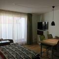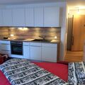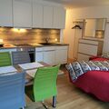 Although the outside area of the studio is modest, as it is located on the level of the cellar compartments, the direct daylight makes it pleasant to spend time inside, even if the view is limited. Nevertheless, the prime location provides direct access to the region's stunning outdoor activities.