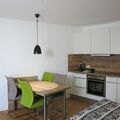 Inside, the studio impresses with its practical and cosy living solutions. Convert the sofa into a comfortable bed with mattress and slatted frame (160 cm) in a few simple steps and enjoy the room as a living area again during the day. An open, well-equipped kitchen with oven, hob, fridge, essential kitchen utensils and a Nespresso coffee machine invites you to cook and enjoy meals together at the dining table for four. Additional storage space is provided by a small cloakroom, a wardrobe, a sideboard and a cellar compartment.