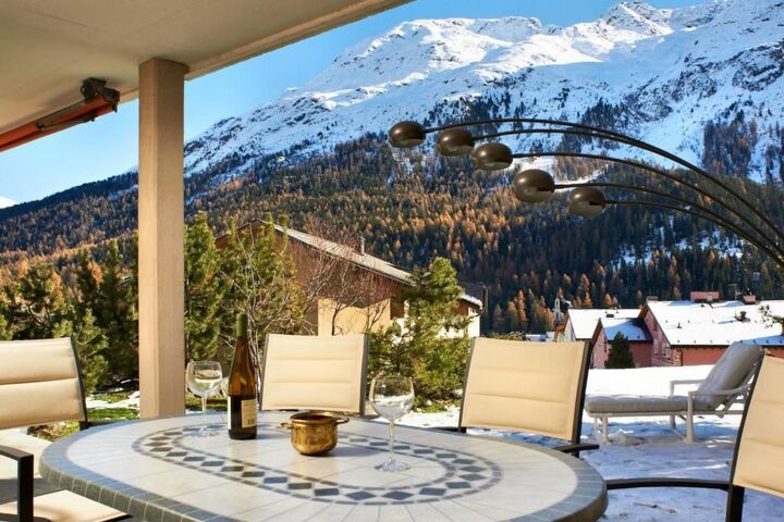 2 Bedrooms: One large room with double bed + (single folding bed on request), large built-in wardrobes, slim TV, and direct exit to the Terrace. The other room, with a view of the "Muottas Muragl" mountains, is equipped with a double bed (French style), wardrobes, etc..