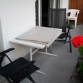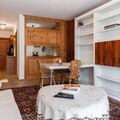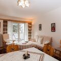 Other living room equipment (living room 1): Dining table for 5 persons, comfortable couch group with table, upholstered armchair and floor lamp, ceramic tile floor covering, oriental carpet, if required: can be used as a second bedroom for 1 - 2 persons at night by means of a double bed built into the wardrobe if the beds in the bedroom are not sufficient