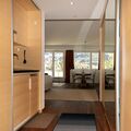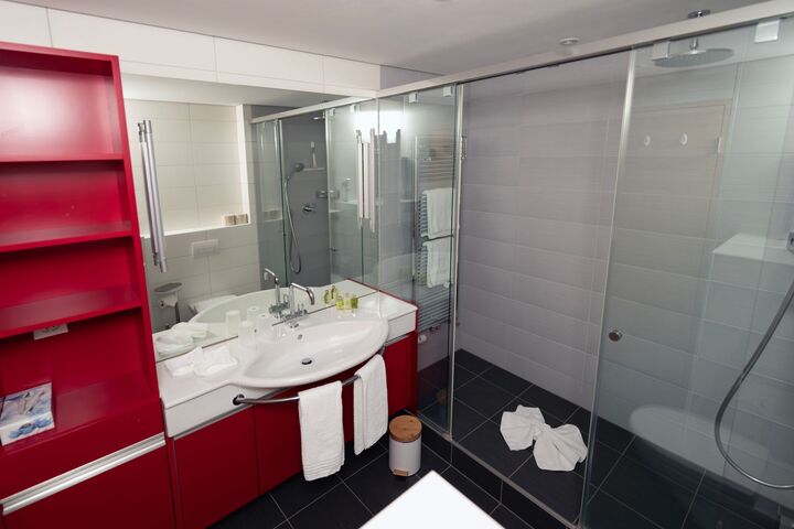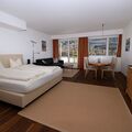 The spacious 43 m2 studio for 2-4 (pull-out sofa) persons is located on the 4th floor of the Hotel Europa. The balcony offers a view of the Upper Engadine with Piz Languard, Rosatsch, Corvatsch and La Margna. There are built-in cupboards and a kitchenette with two ceramic hobs, sink and small fridge. There is a separate small oven with microwave, hot air and grill function and a Nespresso machine.