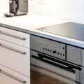 The kitchen is equipped with a dishwasher and a steam oven from Zug as well as a fridge with freezer compartment.