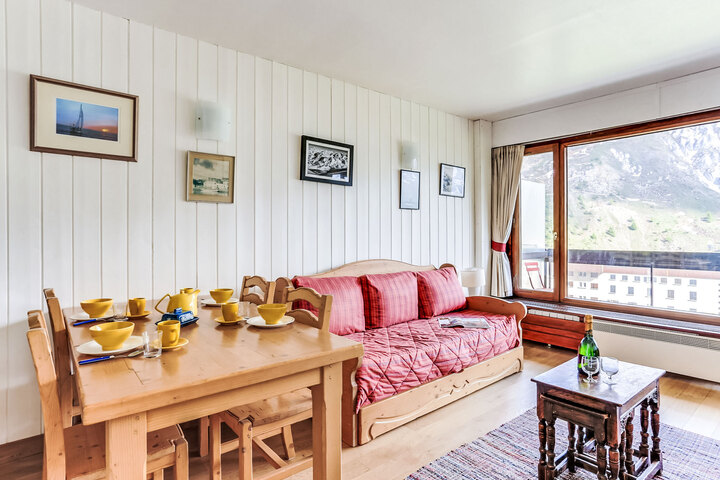 Tignes le Lac: Residence "Le Bec Rouge (Le Lac)", 8 storeys. Excellent location: right in the centre but still quiet, 150 m from the skiing area. In the complex: lift, storage room for skis, central heating system. Shop 200 m, grocery 200 m, supermarket, shopping centre, restaurant 100 m, bar 100 m, bakery 100 m, bus stop, indoor swimming pool 200 m, 200 m. Golf course (18 hole) 1 km, minigolf 1 km, sports centre, chair lift 100 m, gondola lift 200 m, skisport facilities 150 m, slopes 200 m, ski rental 200 m, ski bus stop, ski school 400 m, fishing possibilities 200 m. Nearby attractions: Le Lagon (Piscine, wellness, fitness) 200 m, Centre Sportif Tignespace 200 m, Cinéma 1 km, Bike park l'été 100 m, Base nautique l'été 200 m. Well-known ski regions can easily be reached: Tignes & Val d'Isère 300km de pistes 100 m. Well-known lakes can easily be reached: Le Lac de Tignes 200 m. Hiking paths: Le Parc National de la Vanoise 100 m. Please note: ski bus (free of charge). Free ski bus service to the ski region Tignes & Val d'Isère. In case of good snow conditions, the house is accessible on skis. Please note: Loading and unloading of baggage is possible at the holiday house. Guarded residence. The keys‘ handover takes place by the agency Interhome in Tignes le Lac. Additional accommodations can be booked.