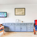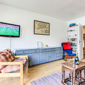 2-room apartment 42 m2 on 2nd floor. Spacious, renovated, very beautiful and cosy furnishings: large living/dining room with 1 double sofabed (1 x 140 cm, length 190 cm), TV and flat screen. Large entrance hall with 1 x 2 bunk beds (80 cm, length 190 cm). 1 room with 2 beds (80 cm, length 190 cm). Exit to the balcony, south facing position. Open kitchen (oven, dishwasher, 4 ceramic glass hob hotplates, toaster, kettle, microwave, electric coffee machine). Bathroom, bath/WC. Balcony, south facing position. View of the mountains and the countryside. Facilities: Internet (WiFi, extra). Please note: non-smokers only. Smoke alarm.