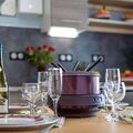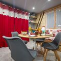 - Very bright, for 4 people, with a pine table, comfortable chairs and stools.