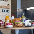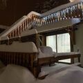The decoration is typical (curtains, double curtains, old skis, panelling, etc.).