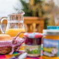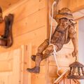 The decoration is typical (curtains, double curtains, ice axes, old skis, panelling, etc.).