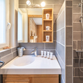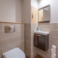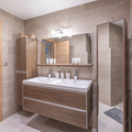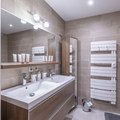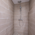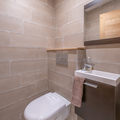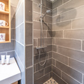 Bathroom 1: Double hand basin, Walk-in shower, and Towel dryer