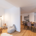 Living area: Large, bright living room with open-plan kitchen, dining area and lounge