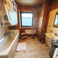 "Forsthaus Chalet", 6-room house 140 m2. Tasteful and wooden furniture furnishings: 2 double bedrooms. Living/dining room with open-hearth fireplace, dining table and TV (flat screen). Open kitchen (oven, dishwasher, 4 ceramic glass hob hotplates, toaster, kettle, electric coffee machine). Bath/WC, sep. WC. Electric heating. Upper floor: 2 double bedrooms. Living/dining room with open-hearth fireplace, dining table and TV (flat screen). Open kitchen (oven, dishwasher, 4 ceramic glass hob hotplates, toaster, kettle). Sep. WC, bath/shower/WC. Electric heating. Comfortable furnishings in the country house style. Large balcony, large terrace. Terrace furniture, balcony furniture. Very beautiful view of the mountains. Facilities: Internet (WiFi, free). Please note: suitable for families. Non-smokers only. Maximum 2 pets/ dogs allowed. Smoke alarm. No internal connecting door between the separated properties. No internal connecting door between the floors. 50511-000054-2020