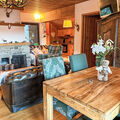"Silvia", 3-room apartment 70 m2, on the upper floor. Comfortable and wooden furniture furnishings: 2 double bedrooms. Living/dining room with open-hearth fireplace, dining table, TV and flat screen. Open kitchen (oven, dishwasher, 4 ceramic glass hob hotplates, toaster, kettle, electric coffee machine). Sep. WC, bath/shower/WC. Electric heating. Comfortable furnishings in the country house style. Large balcony. Balcony furniture. Very beautiful view of the mountains. Facilities: Internet (WiFi, free). Please note: suitable for families. Non-smokers only. Maximum 1 pet/ dog allowed. Smoke alarm. 50511-000054-2020
