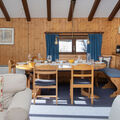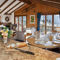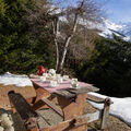 "5 Ecorces", 5-room chalet on 3 levels, south facing position. Comfortable and cosy furnishings: living/dining room with open-hearth fireplace and cable TV. Exit to the balcony. Open kitchen (4 hot plates, oven, dishwasher, kettle, electric coffee machine, Capsules for coffee machine (Nespresso) extra, fondue Set (cheese)). 2 showers/WC, sep. WC. Electric heating. On the lower ground floor: 2 rooms, each room with 2 beds (90 cm, length 200 cm), hand-basin. Exit to the terrace. 1 room with 1 bed (90 cm, length 200 cm). 1 room with 2 beds (90 cm, length 200 cm). Carpet. Balcony, south facing position, terrace. Balcony furniture. Very beautiful view of the mountains, the countryside and the resort. Facilities: washing machine. Internet (WiFi, free). Parking (1 car) at 50 m. Please note: non-smokers only.