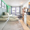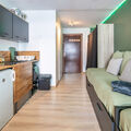 "Le Vernon", 1-room studio 20 m2 on 7th floor. Object suitable for 4 adults. Living room with 2 sofabeds, 2 pull-out beds and TV. Open kitchen (2 hot plates, toaster, kettle, microwave, electric coffee machine). Bath/WC. Balcony. View of the mountains and the ski run. Please note: non-smokers only. Smoke alarm. Offer by a commercial proprietor according to Art. 155, IV, CGI