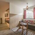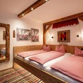 Our holiday apartment is 85 m² and can accommodate 2-6 people. It consists of two bedrooms (one with an extra-large triple bed and a connecting door with a sofa bed that can be converted into a double or single bed if needed), and a second bedroom with a double bed; a spacious kitchen with a large leather corner bench, refrigerator, four-burner stove, toaster, Nespresso machine, microwave, kettle, three TVs with satellite connection, a selection of games, a bathroom with underfloor heating, shower, and toilet, a drying room for wet ski clothing and ski boots, and a lovely sun terrace with comfortable outdoor garden furniture (new). There is also a large parking area with a carport. The apartment is furnished with great attention to detail in a traditional Tyrolean style by a carpenter.