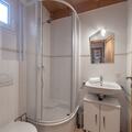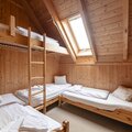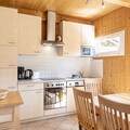 With 70 m² of space, our 2-bedroom chalet offers enough room for 2 to 8 people. Your vacation accommodation has 2 bedrooms (1 double bed, 2 single beds, and a bunk bed) and 2 bathrooms with toilet/bathtub or shower (hairdryer available), a living area with fireplace and double sofa bed, and a terrace. The kitchen is equipped with cutlery, crockery, pots and pans, a hotplate (4 rings), a refrigerator with freezer compartment, a microwave, a dishwasher, and other appliances such as a coffee machine (filter machine), a toaster, and a kettle.